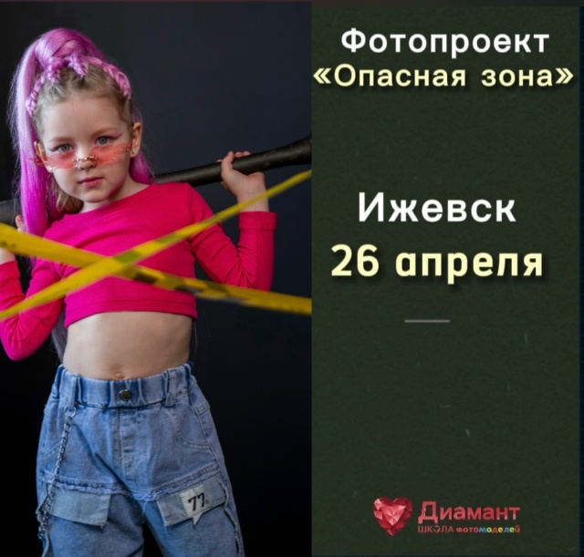 ⛔️ Школа Фотомоделей «ДИАМАНТ» Ижевск приглашает на проект «Опасная зона» ⚠️ 🎉Только один день, 26 апреля! Не пропустите! 🎉 ✅Специально для наших участников: • минималистичная студия КИНОЦЕХ | Видео Фото студия Ижевск ; • тематическое оформление и аксессуары; • 📸 5 обработанных фото. 🔥Фотографы : Фотограф Ижевск | Алёна Северюхина Алёна Семенова Ролина Галимзянова Valeria Maksimovna Марат Файзуллин Ксения Гурова Анна Баженова Стоимость участия от 1000 р. Пишите в сообщения группы Школа Фотомоделей «ДИАМАНТ» Ижевск или ставьте ➕ в комментарии и мы вышлем подробности 🔥 А так же объявляем отбор на : 🔴3 бесплатных места на данную съёмку.🔴 Условия: ✨Сделать репост этого поста; ✨Отправить 2 фотографии ребёнка в сообщения группы Школа Фотомоделей «ДИАМАНТ» Ижевск ✨написать любой комментарий под постом. Результаты отбора будут 24.04.