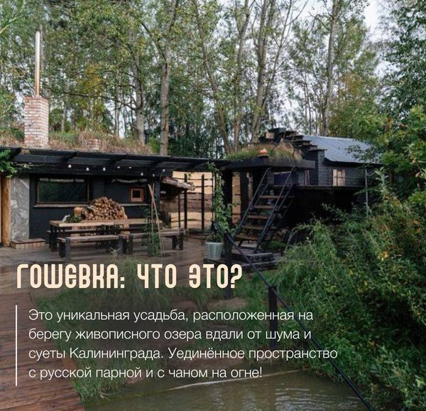 Банный комплекс «Гошевка» – это роскошная усадьба, расположенная на берегу живописного озера вдали от шума и суеты Калининграда. Уединённое пространство с русской парной и с чаном на огне для вашего незабываемого отдыха. Здесь созданы все условия, чтобы провести банные ритуалы в лучших традициях! Кроме вас и вашей компании никого не будет!