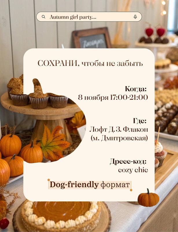 А мы раскрываем программу Autumn Girl Party — атмосферного вечера для девушек и их пушистых друзей 🐶
