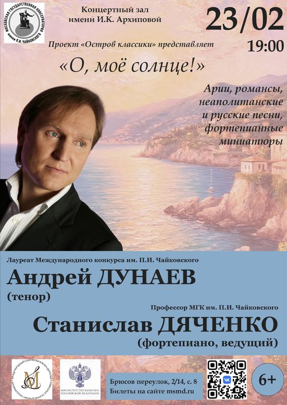 Проект "Остров классики" представляет новую программу, в которой безупречное бельканто Андрея Дунаева соединится с концертмейстерским искусством профессора Московской консерватории Станислава Дяченко.