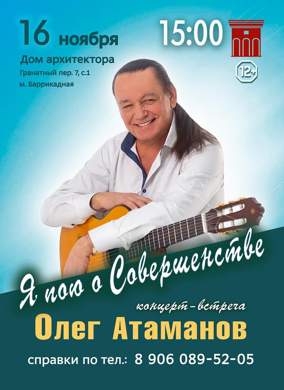 16 ноября в 15.00 в Доме архитектора состоится уникальный концерт незаурядного и талантливого исполнителя своих Песен Олега Атаманова.