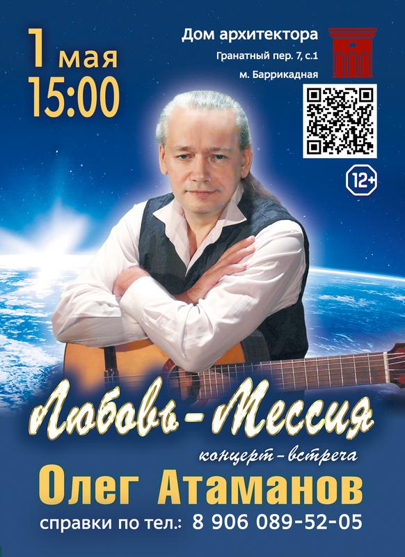 1 мая в 15.00 в Доме архитектора состоится концерт – встреча с Певцом - Сказителем Олегом Атамановым – автором, исполнителем, поэтом и философом, профессором Минского университета.