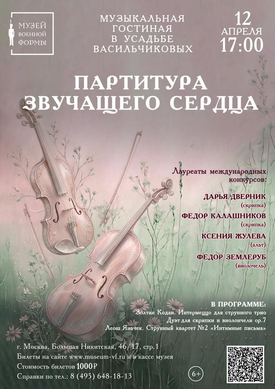 Исполнители: Лауреаты международных конкурсов Дарья Дверник (скрипка), Федор Калашников (скрипка), Ксения Жулева (альт), Федор Землеруб (виолончель).
