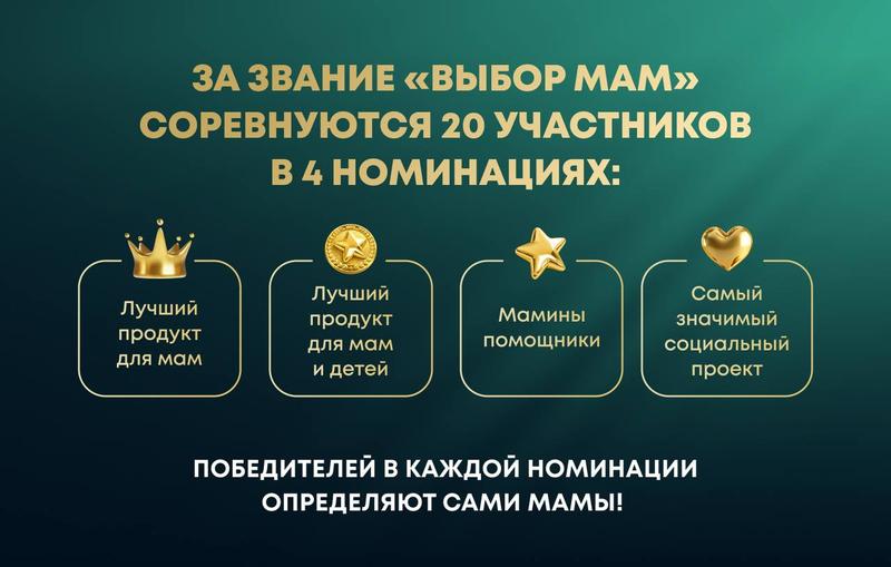 На премии «ВЫБОР МАМ – 2026» будут выбраны победители в 4 номинациях: