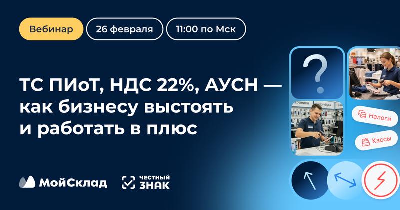 26 февраля пройдет бесплатный вебинар с участием "Честного знака". Спикеры объяснят сложные термины и новые требования понятным языком. А эксперт по налогам и бухгалтерии раскроет, как избежать штрафов и переплат в конце первого квартала.