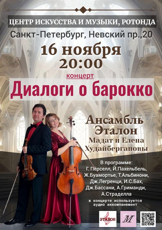В исполнении лауреатов международных конкурсов — дуэта «Эталон»: Мадата и Елены Худайбергановых (скрипка и виолончель) прозвучат как произведения признанных мастеров эпохи Г. Генделя, Г. Персела, И.С.Баха, Т. Альбинони, так и малоизвестных композиторов Ж. Буамортье, Дж. Легренци, А. Страделлы, Ф.К.Белизи, А.Гриманди. Слово барокко с итальянского переводится как «причудливый, странный». Диалоги скрипки и виолончели откроют для слушателей мир изысканного звучания ушедшей эпохи. Концерт сопровождается аудио аккомпанементом и проводится в рамках клуба «Музыкальные встречи».