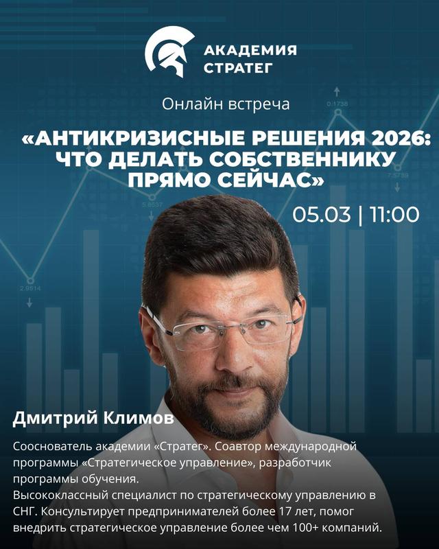 На встрече мы разберём, как собственнику не просто удержать бизнес на плаву, а выйти из кризиса более сильным, системным и свободным от операционки.