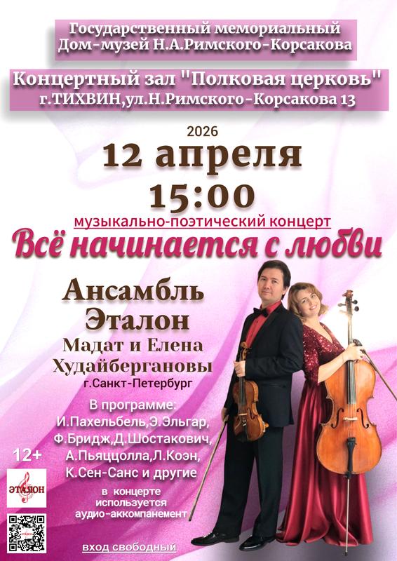 Чарующее звучание скрипки и виолончели, пронзительность и искренность - все это ждет вас в нашей программе. Семейный дуэт Эталон – передаст грани ярких чувств и трепетных эмоций в стихах и музыке. На концерте прозвучит любимая и знакомая классика, а так же романтические композиции разных композиторов. Прозвучат произведения разных авторов и эпох Й.Пахельбеля, А.Пьяццоллы, Л.Коэна, Э.Эльгара, Ф.Бриджа, Д.Шостаковича, А.Вивальди, К.Сен-Санса, Я.Гаде и других. Концерт будет сопровождаться с аудио аккомпанементом.