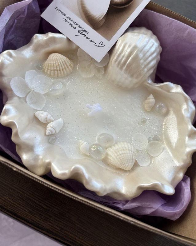 - Создание свечи-ракушки с жемчугом или сухоцветами;