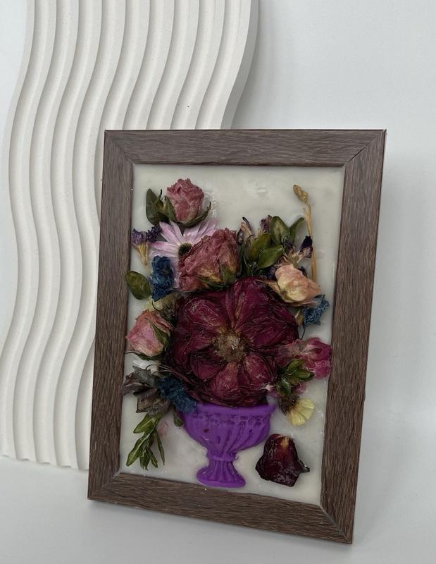 - Картина из воска с сухоцветами и декором;