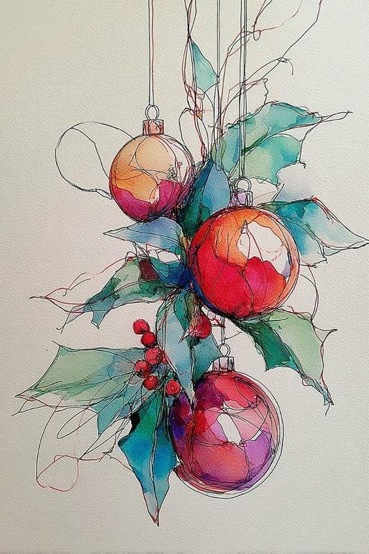 6.12 в 14.00 Мастер-класс по акварельному скетчингу "Новогодние игрушки".