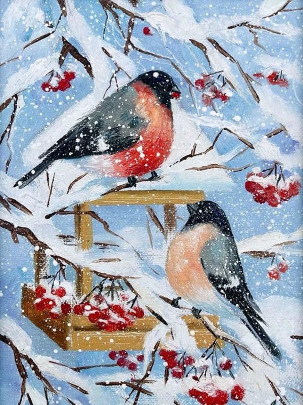 3.01 в 15.00 Новогодний мастер-класс "Снегири", масло.
