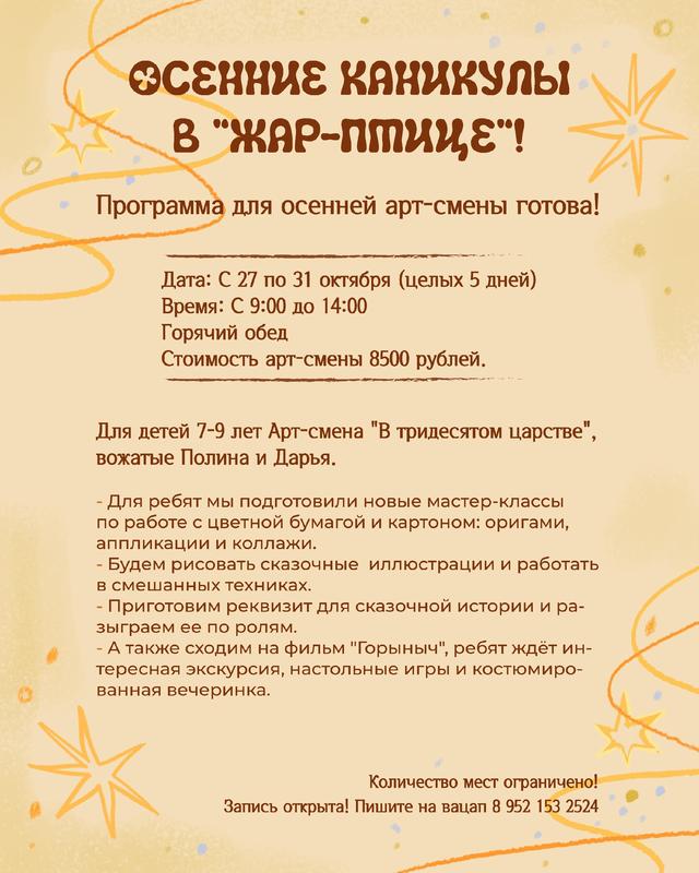 Осенние каникулы в "Жар-птице" с 27 по 31 октября (целых 5 дней)!