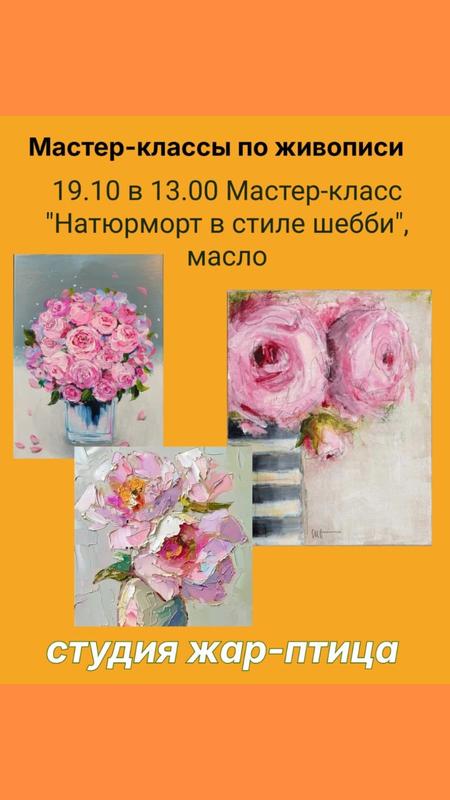 19.10 в 13.00 Мастер-класс "Натюрморт в стиле шебби", масло 2000 ₽.