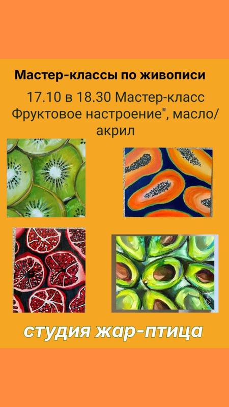 17.10 в 18.30 Мастер-класс "Фруктовое настроение", масло 2000 ₽.