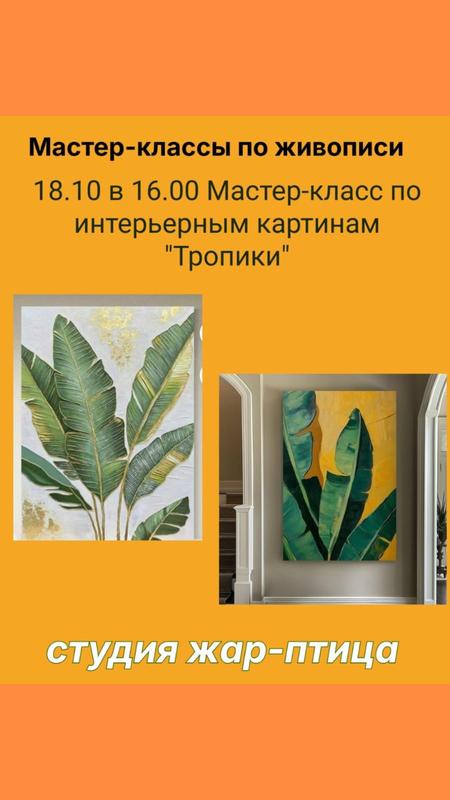 18.10 в 16.00 Мастер-класс по интерьерным картинам "Тропики" 2000 ₽.