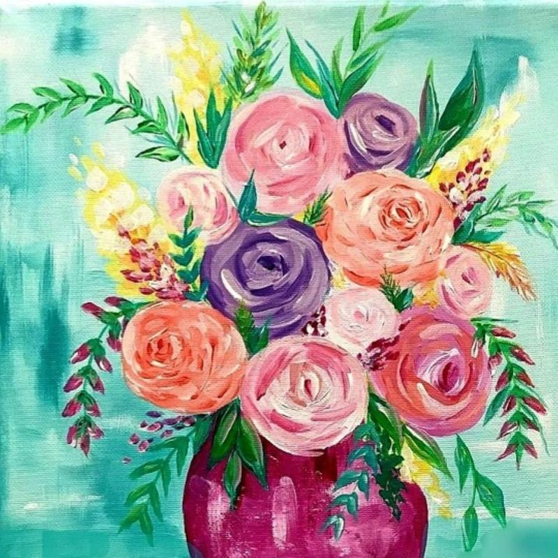 28.02 в 14.00 Мастер-класс для детей "Букет цветов", акрил..