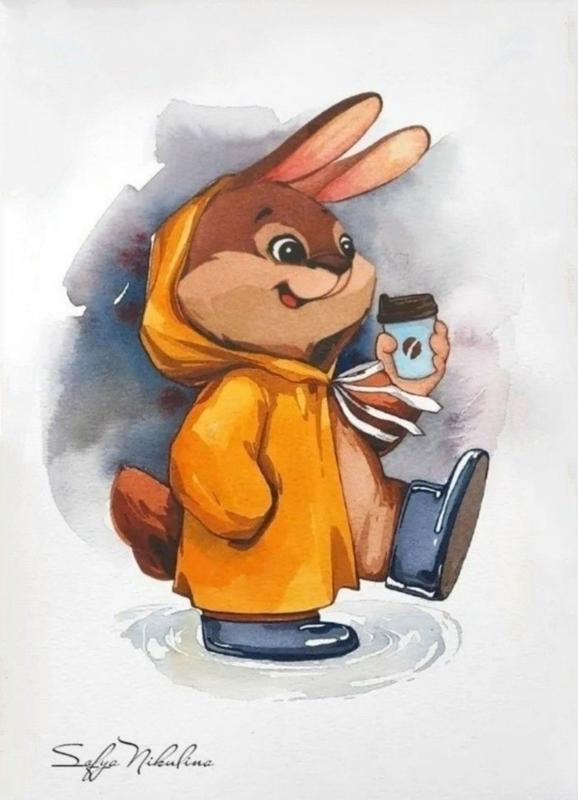 2.05 в 10.00 Мастер-класс для детей "Зайчик с кофе", маркеры.