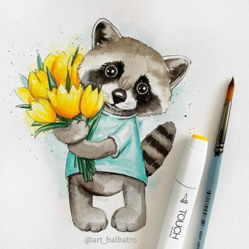16.05 в 10.00 Мастер-класс для детей "Енот с тюльпанами", маркеры.
