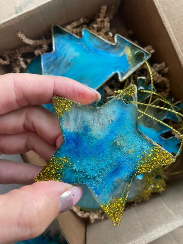 На мастер-классе будем делать новогодние игрушки из эпоксидной смолы и колеров, сыпать блестки и глиттеры. Познаете все секреты работы со смолой, получите незабываемые эмоции и принесете домой набор авторских новогодних игрушек и новогоднее настроение.