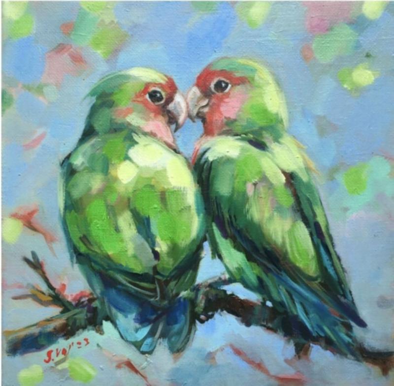 3.02 в 18.30 Мастер-класс "Попугайчики-неразлучники", масло.