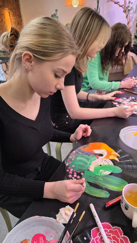 В уютной обстановке мастерской Колючий Лис под руководством мастерицы Ирины и ее помощницы Софьи вы погрузитесь в занимательный творческий процесс мастер-класса по рисунку на виниловых пластинках. Чай и кофе от Колючего Лиса как приятный бонус.
