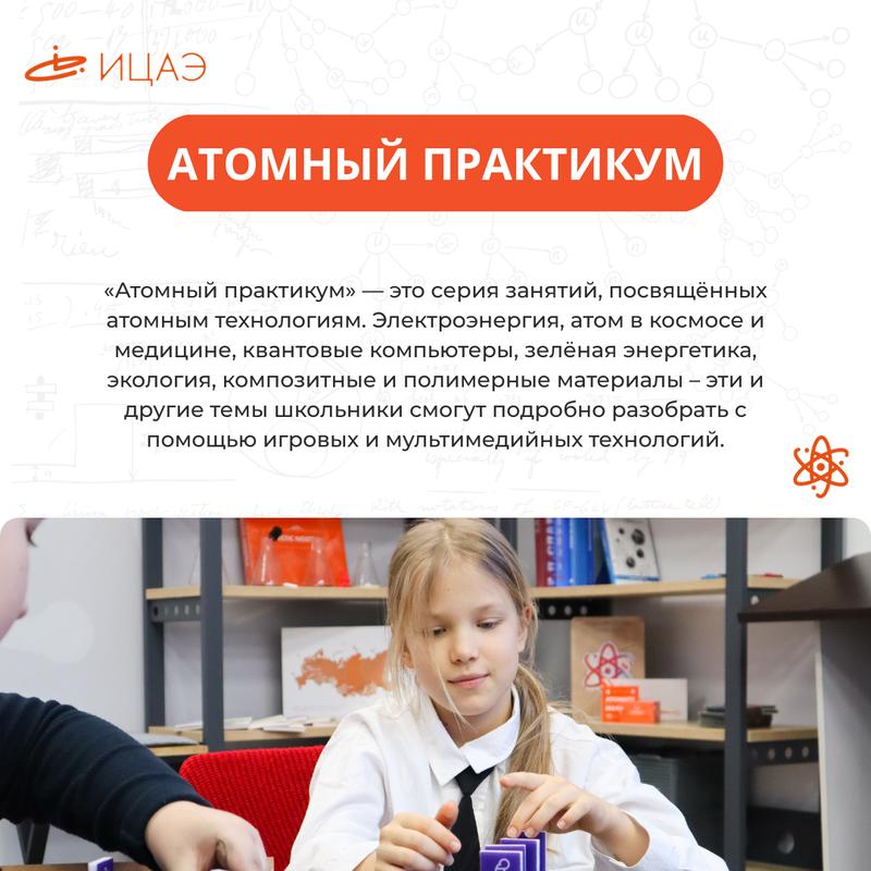 Электроэнергия, атом в космосе и медицине, квантовые компьютеры, зелёная энергетика, экология, композитные и полимерные материалы – эти и другие темы школьники смогут подробно разобрать с помощью игровых и мультимедийных технологий.