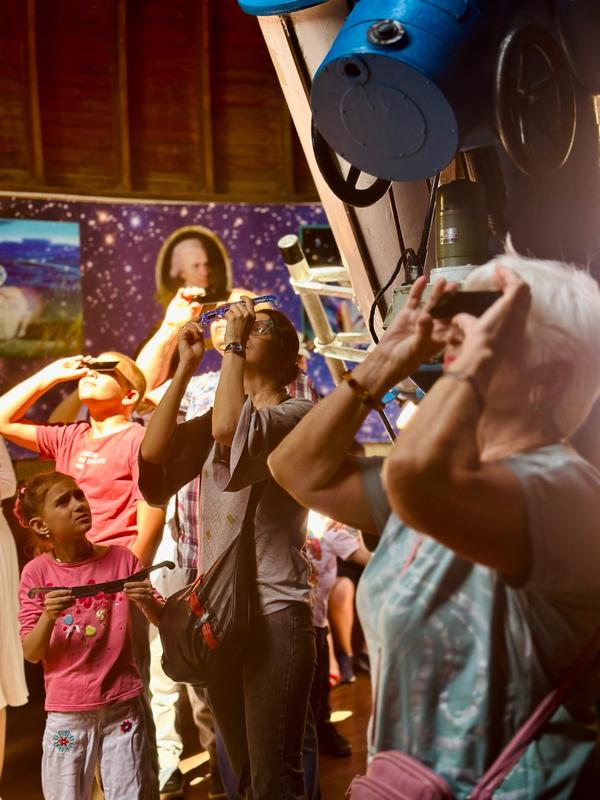 На практическом занятии в обсерватории будут проведены наблюдения активных областей Солнца: солнечных пятен, ярких факелов, протуберанцев.